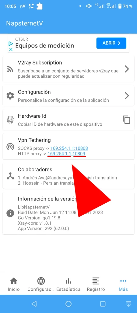 3. En la pantalla se muestran la dirección Proxy y puerto Proxy que se deben configurar en el dispositivo que recibe el internet compartido